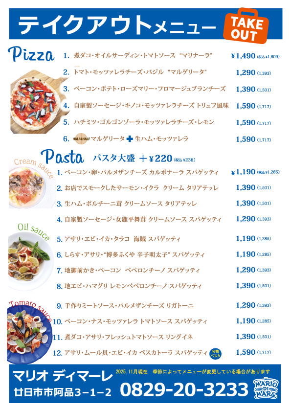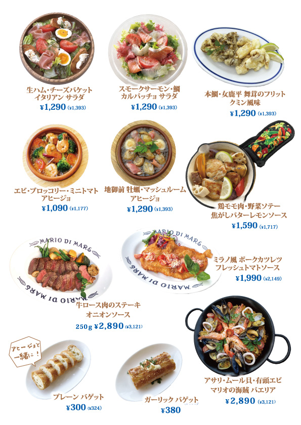 | マリオディマーレの商品をお持ち帰りできます。 詳しいメニューはポップをご覧ください。 |