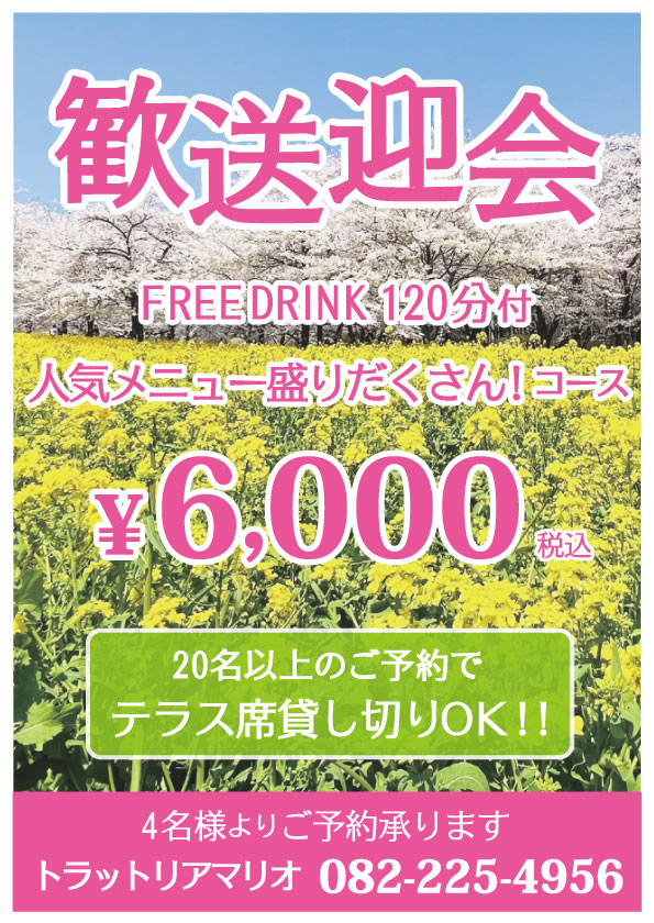 歓送迎会ほか、ご予約承り中!詳細は各店舗にお問い合わせください。
