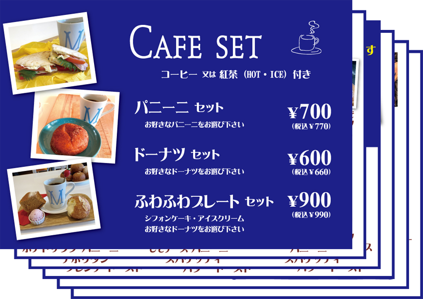 税込価格表示はテイクアウト(軽減税率8%)の価格です。店内飲食の場合は税率が異なりますので(10%)別価格となります。