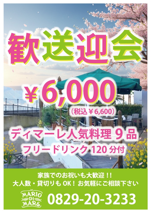 歓送迎会ほか、ご予約承り中!詳細は各店舗にお問い合わせください。