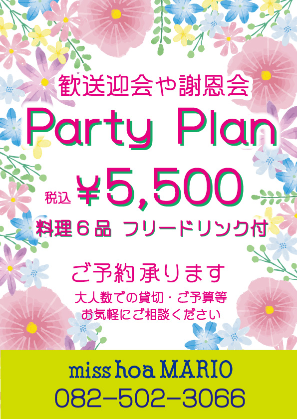 サン・マリオレストラン各店では、パーティプランをご用意しています!旬な食材を豊富に使ったコース料理をぜひお楽しみください。